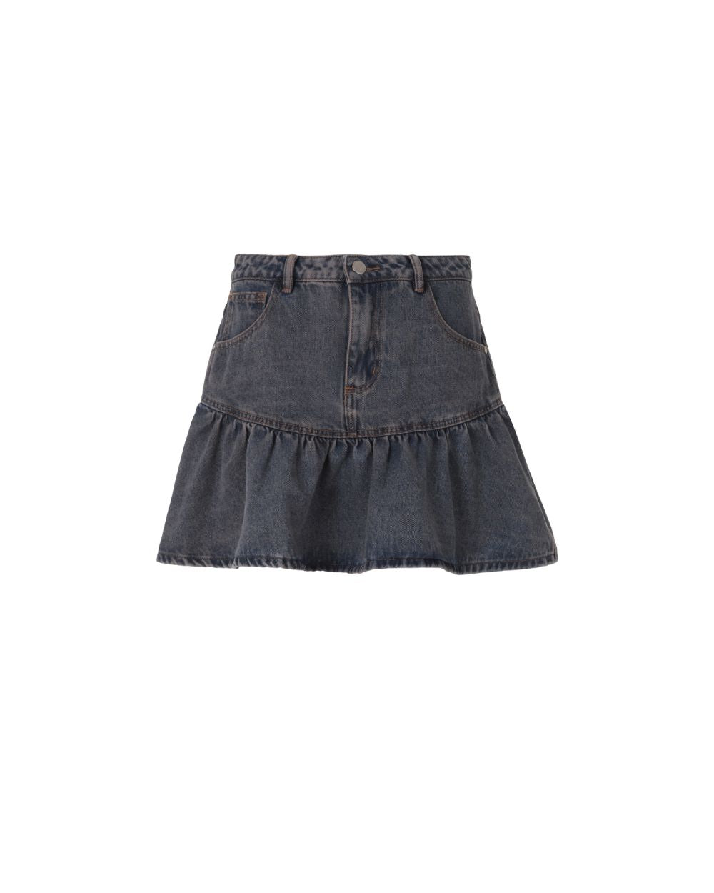 Esta mini falda de jean en tono índigo wash tiene el largo ideal para estilizar tu figura sin mostrar de más. Dale un toque divertido y fresco a tu look con "Skirt me up", perfecta para combinar con las cut out t shirt y destacar con actitud.